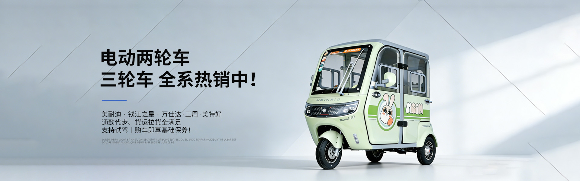 经营部主营电动两轮车、电动三轮车销售,涵盖美耐迪、钱江之星、万仕达等知名品牌,适配日常通勤、货运代步等多元场景。配件品类齐全,轮胎供应正新、黑猫、金雨、鑫无双等品质款,充电器涵盖英发、澳羽、劲程、集泽、品锐峰等品牌,全程严把质量关,兼顾性能与性价比。